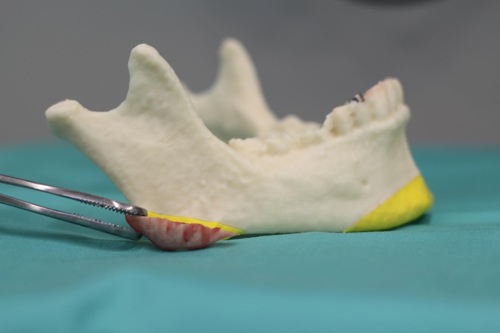השוואה בין המודל התלת מימדי של הלסת לבין העצם שהוצאה בניתוח.