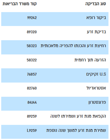 אילו בדיקות נדרשות, קודים לטפסי התחייבות ועד
