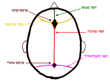 הגולגולת מורכבת מעצמות שטוחות המחוברות זו לזו על ידי תפרים כך נוצרת "קופסה" סגורה המגינה על המוח. באזור החיבור בין העצמות נמצאים התפרים (Suture) ובמפגש התפרים נמצאים המרפסים (Fontanelle). (ראה ציור 1)
