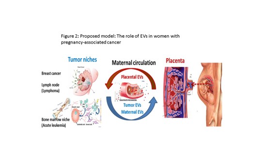 We propose a model whereby EVs that normally mediate placental-maternal crosstalk can also promote an oncogenic micro-milieu within the cancer niche.