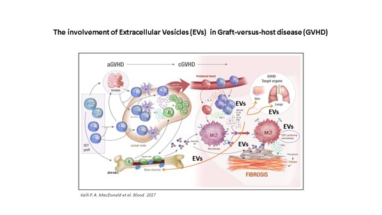 We assume that the EVs generated by P-MSC may express immunosuppressive antigens such as those found on their parental cells and will therefore be able to deliver this “immunosuppressive cargo” to immune cells. Moreover, we assume that P-MSC EVs have the potential to limit inflammation and play a major role in controlling the inflammatory response that characterizes cGVHD while mediating the healing process in injured tissues.