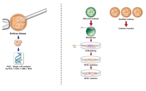 During fertilization, the human sperm and egg unite to form the developing fetus. These early phases of preimplantation development are considered one of the most fundamental questions in cell biology. Our research lab focuses on deciphering these initial stages of embryonic development in order to understand how these processes are controlled in normal development and what happens as they stray from it, which leads to severe genetic diseases. Our research model include human embryonic stem cells (hESC) that we derive directly from diseased embryos in order to study the mechanisms underlying the development of genetic diseases. We derive hESCs directly from affected embryos, which are obtained as a by-product of the preimplantation genetic diagnosis (PGD) procedure. PGD is performed for couples at high risk of transmitting a genetic defect and who wish to ensure the birth of a healthy child. Following PGD, embryos diagnosed as being disease-free are transferred into the uterus for implantation, whereas the affected embryos that would be otherwise discarded can be donated for research by deriving hESC lines that carry the naturally inherited mutations. We have already established >70 mutant hESC lines associated with >20 different inherited disorders. Fragile X syndrome (FXS) is the most common form of inherited cognitive impairment and the most common genetic basis of Autism. It is caused by inactivation of the FMR1 gene with pivotal roles in brain development and function. We derived hESC lines with the FX mutation and differentiate them into fully functional Neuronal Networks, Astrocytes or 3D Brain Organoids. We comprehensively compare the molecular and neuronal deficiencies of FX and control differentiated cells in order to explore the molecular and cellular bases of FXS. Our findings can explain the origin for development of intellectual dysfunction associated with the disease and will lead us to propose and test targeted drugs to ameliorate the neural deficits observed in an otherwise inaccessible human in vitro system. Familial adenomatous polyposis (FAP) is an inherited syndrome caused by a heterozygous APC germline mutation, associated with a profound lifetime risk for colorectal cancer. While it is well accepted that tumorigenic transformation is initiated following loss of function of the APC gene, the role of heterozygous APC mutation in this process is yet to be discovered. By differentiating our FAP-hESC lines into colon organoids and correlating their development, genotype and transcriptome results to the severity of the disease in FAP patients carrying the same mutations, we have shown that a single truncated APC allele is sufficient to initiate early molecular tumorigenic activity. Our results further show that patient-specific hESC-derived colon organoids can predict disease severity among FAP patients (Preisler er al., 2021). Using CRISPR to induce the second hit in the APC gene within the in vitro derived colon organoids, we now study the molecular trajectory underlying early stages of tumorigenic transformation in the colon. We develop a novel deep learning and interactive data visualization approaches for clinical IVF images. We extract and analyze visual features from routinely collected images of embryos and develop an algorithms to automatically measure embryo features from movies. We compared the network and embryologist accuracies and proved that all our networks are more consistent and potentially more accurate than those of current clinical practice. Our networks can now be used for automated clinical evaluations to assist embryologists. We now plan to combine these visual features with patients’ electronic health record data to improve embryo selection and clinical data analysis. *In collaboration with Daniel Needleman and Hanspeter Pfister from Harvard University Link to the manuscript - https://pubmed.ncbi.nlm.nih.gov/38396213/ In collaboration with Harvard university Human preimplantation development is a complex process involving extensive remodeling of gene expression. We generate a novel human embryo transcriptome using integrated long- and short-read RNA sequencing in order to catalog transcriptional changes occurring across very early time points in human embryogenesis by leveraging consented, high quality IVF human embryos throughout preimplantation development. The results of this study will act as a valuable resource to empower future studies aiming to explore human development. Link to the manuscript - https://pubmed.ncbi.nlm.nih.gov/37903791/ In collaboration with Salomon Dadia, Yoav Barnea, Inna Solodeev, TASMC and Lihi Abramovitch TAUPrimary Investigator